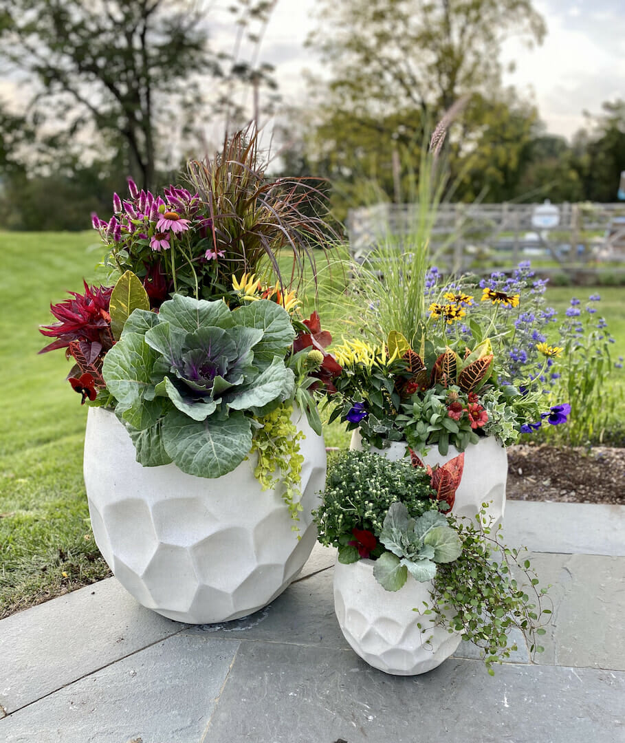 Lets clear out the old and bring in fresh autumnal blooms of grasses, mums, hearty flowers, and herbs.