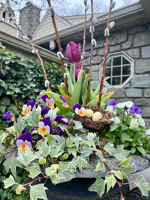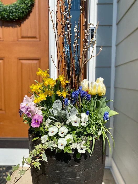 There is nothing better than having a beautiful spring planter ready to welcome your guests and spring! We will fill your planters with artsy branches, twigs, hearty pansies and spring blooms to suit your style.